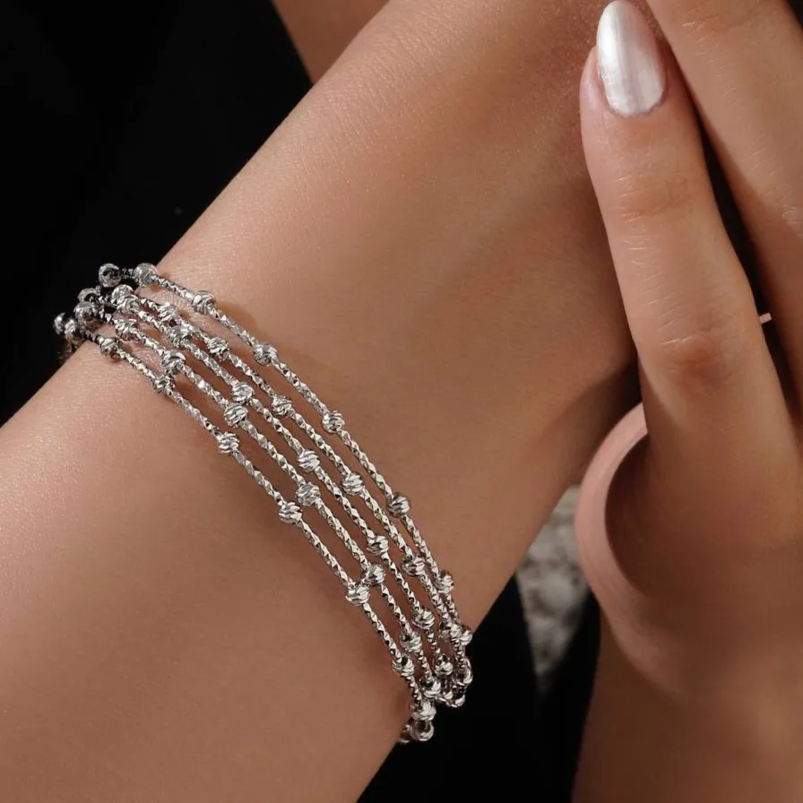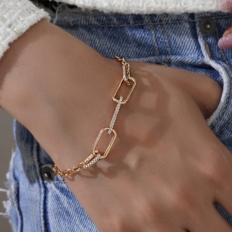 دستبند زنانه مدل پولکی نگین دار برند CM - رنگ ثابت