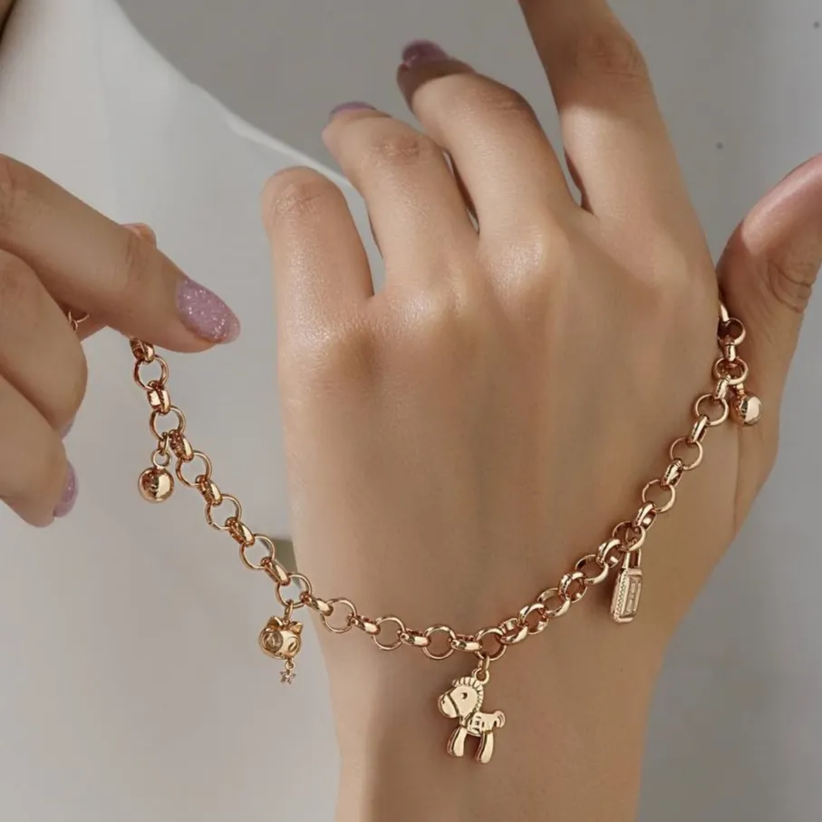 دستبند زنانه طرح عروسکی برند ژوپینک آبکاری IPG ضدحساسیت