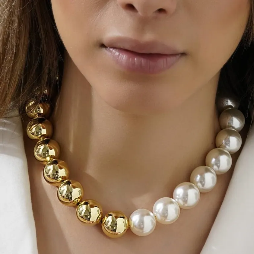 گردنبند بدلی زنانه طرح توپی و مروارید - لوکس مناسب هدیه