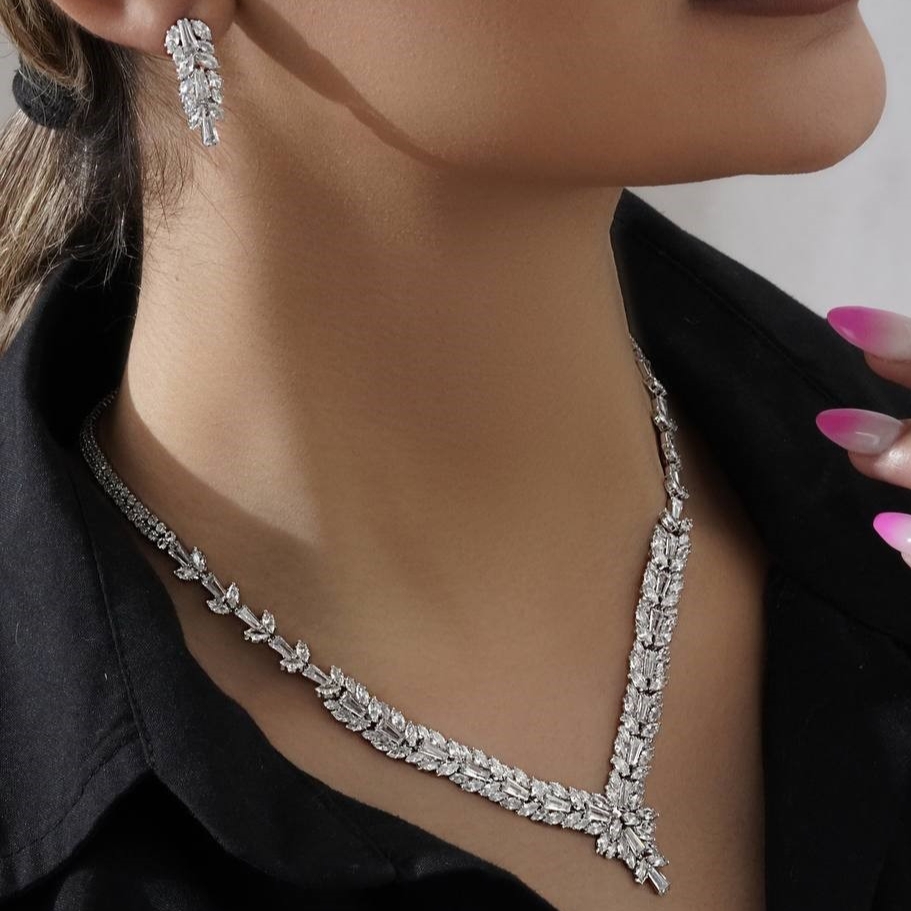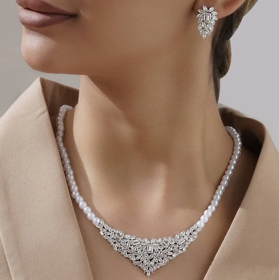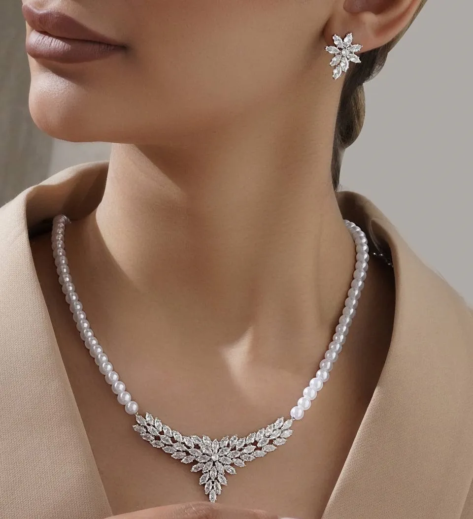 نیم ست زنانه طرح جواهر مروارید فول نگین