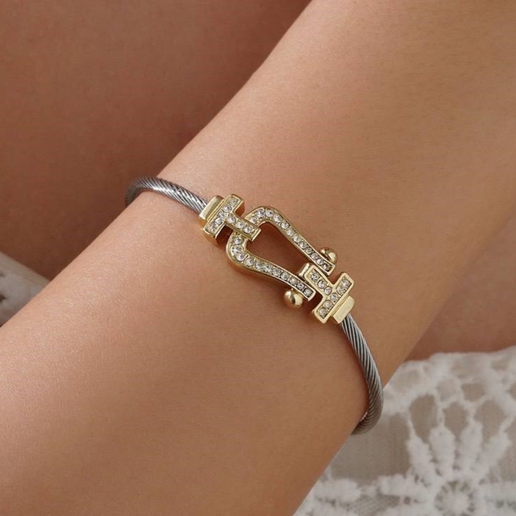 دستبند النگویی زنانه مدل قفل باز رنگ ثابت بدون حساسیت