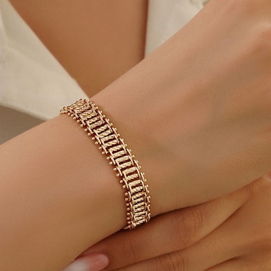 دستبند النگویی زنانه طرح قفل دار مشابه طرح اصلی طلا ضد حساسیت