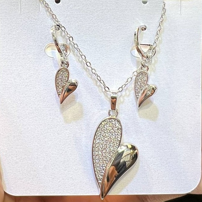 نیم ست قلبی طرح طلا سفید