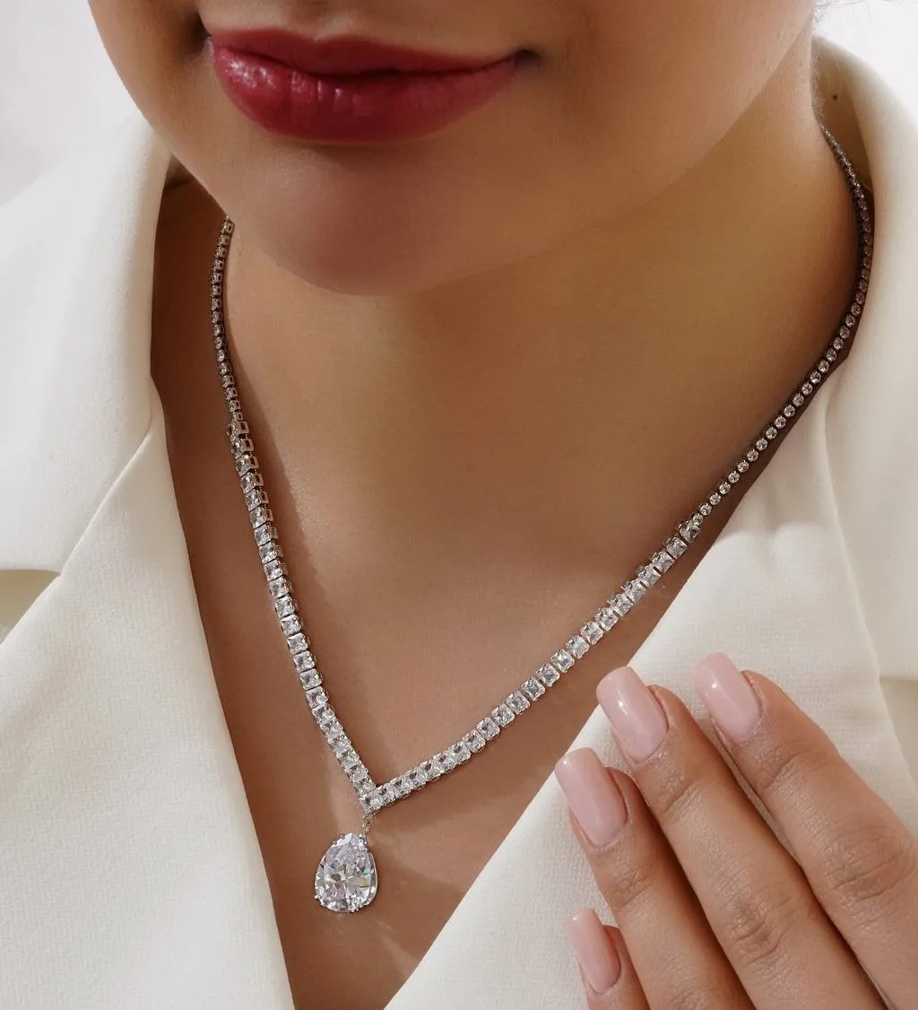 گردنبند فول نگین سنگ سفید و سبز زنانه - بدون حساسیت - رنگ ثابت