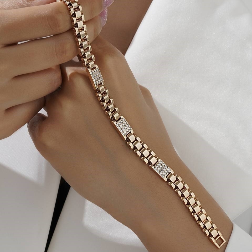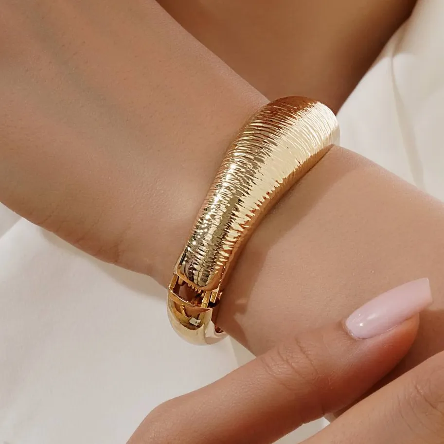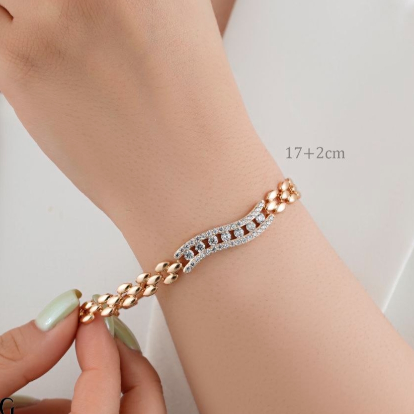 دستبند النگویی زنانه رنگ زرد طرح جواهر بدون حساسیت رنگ ثابت
