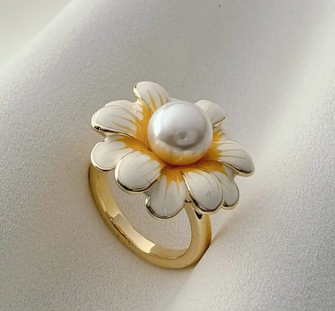 انگشتر مشابه طلا طرح گل رکاب زرد
