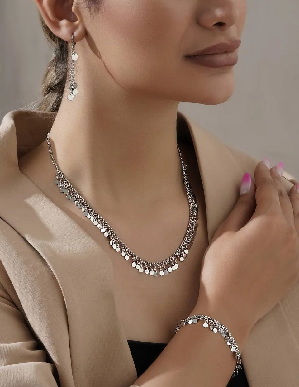 نیم ست زنانه طرح سکه ای سفید برند YSX