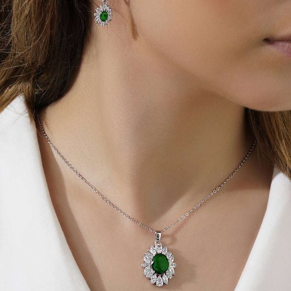 گردنبند طرح جواهر آبکاری نقره