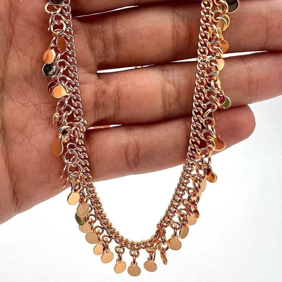 گردنبند زنانه مشابه طلا مدل ونکلیف 2 لاین زنجیر رنگ ثابت