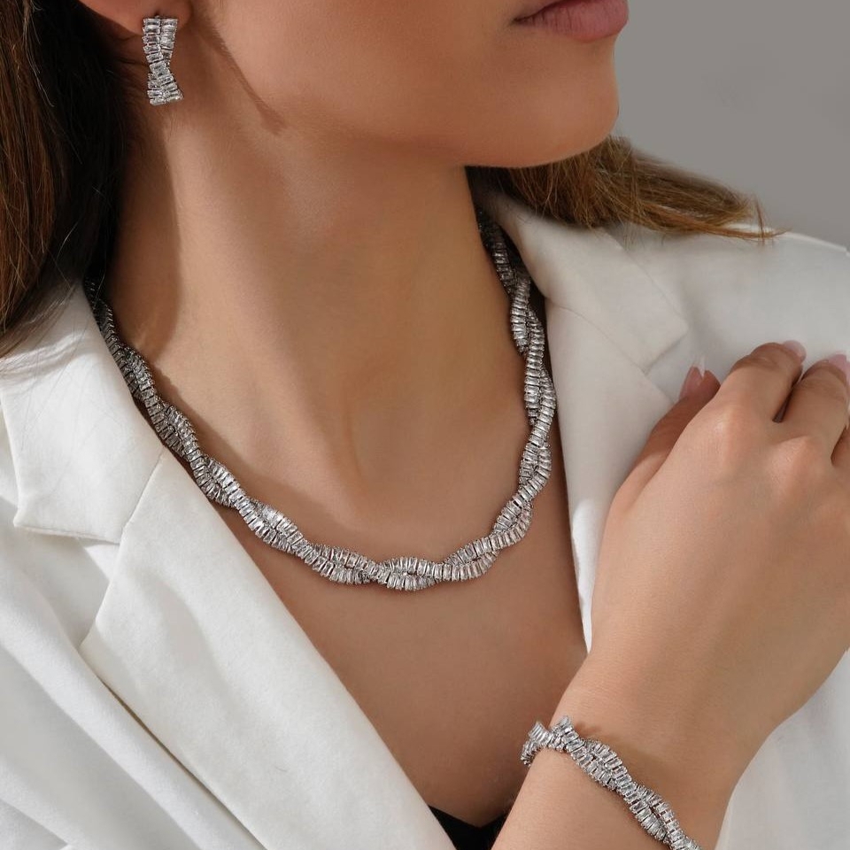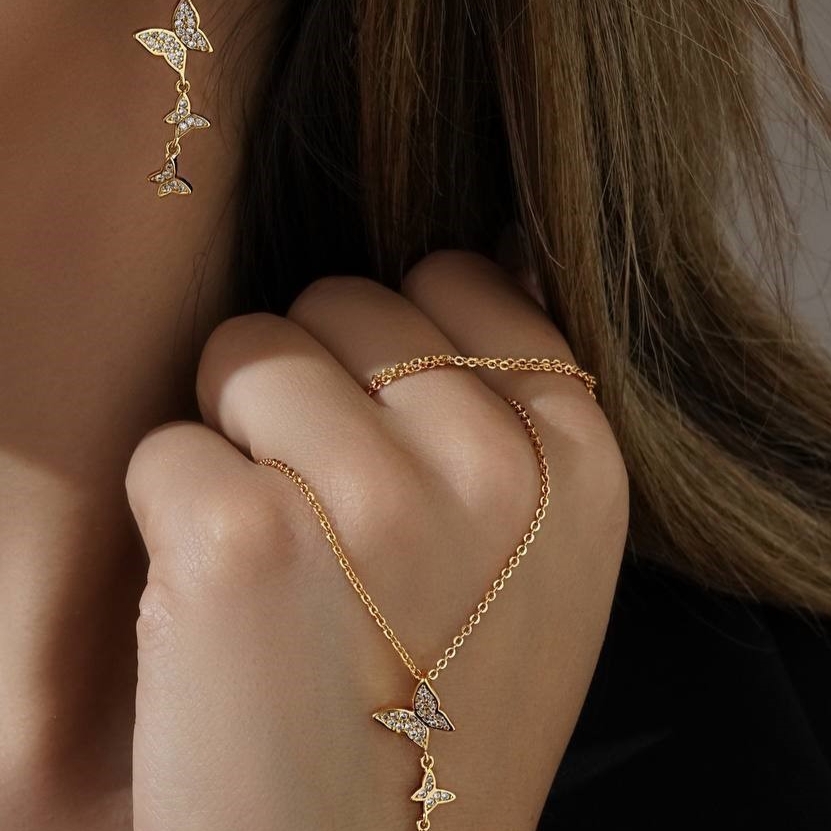 نیم ست زنانه طرح طلا نگین دار برند YSX بدون تغییر رنگ
