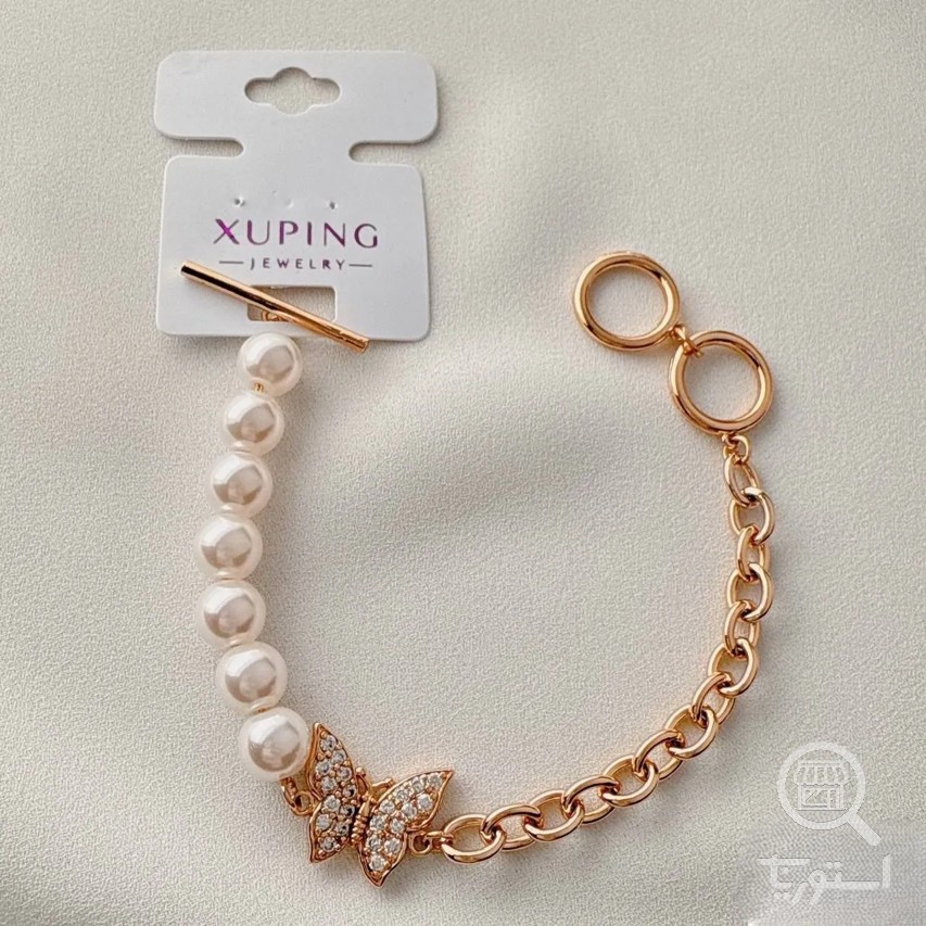 دستبند دخترانه طرح پروانه نگین دار و مروارید برند ژوپینگ رنگ ثابت