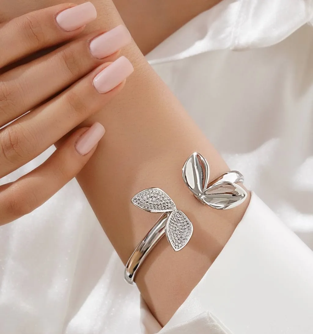 دستبند النگویی زنانه طرح پروانه نگین دار مناسب کادو ولنتاین رنگ ثابت