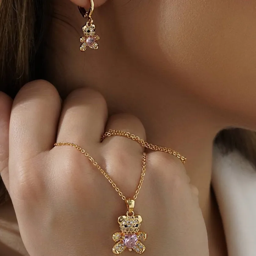 نیم ست بدلی زنانه طرح خرس قلبی - نگین دار - بدون حساسیت