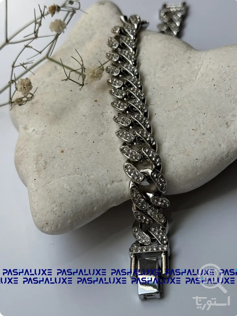 دستبند زنانه مدل کارتیه نگین دار قفل کوبایی - رنگ ثابت