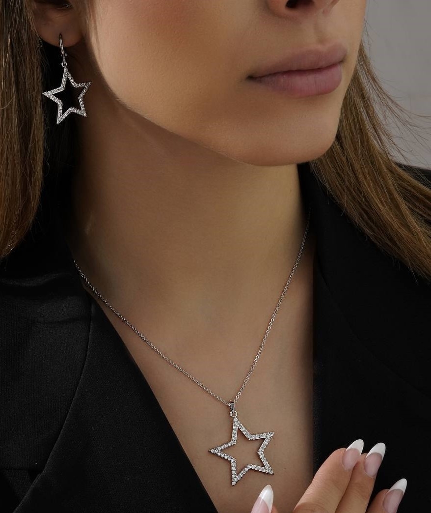 نیم ست زنانه مدل ستاره جنس استیل - رنگ ثابت بدون حساسیت