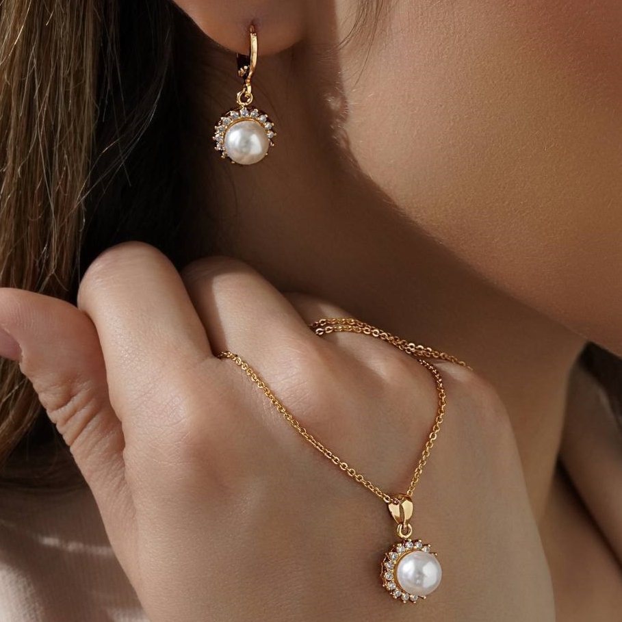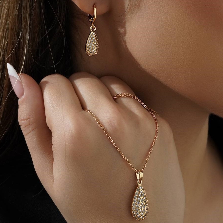 گوشواره ونکلیف نگین دار زنانه لوکس