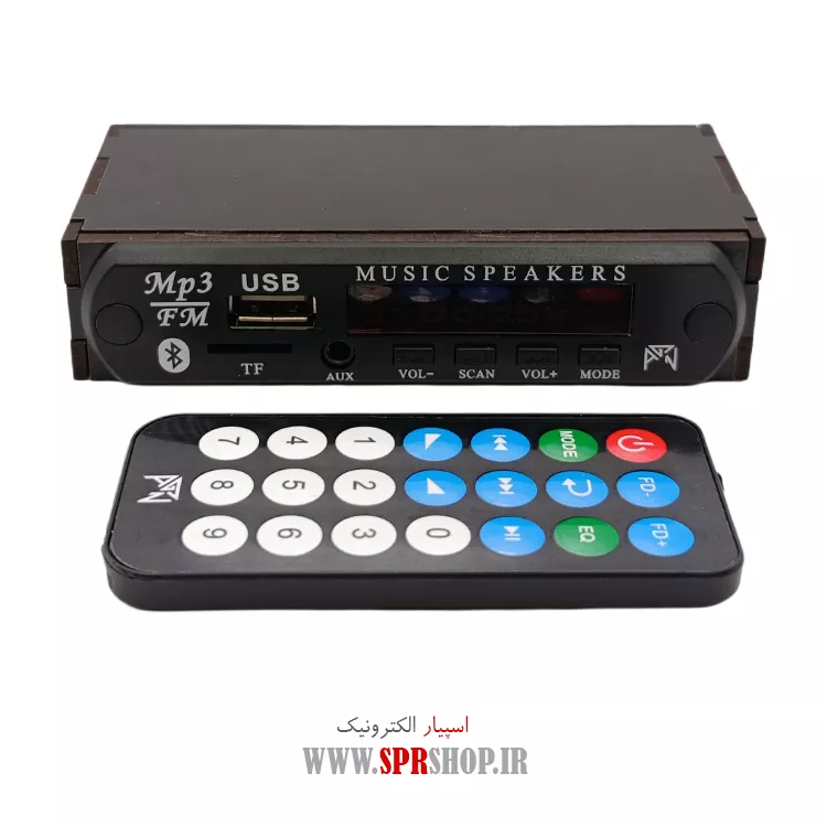 برد USB بلوتوث قابدار 12 ولت با آمپلی 2 کاناله 50 وات و ریموت مدل SP23