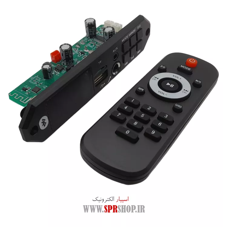 برد USB بلوتوث 12 ولت پنل دار با آمپلی 2 کاناله 40 وات و ریموت