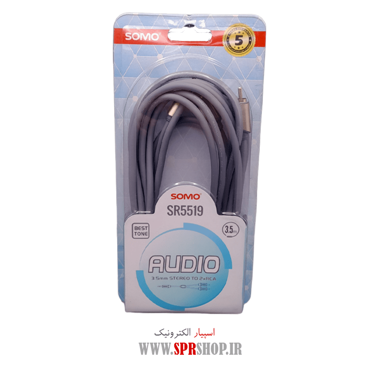 کابل تبدیل جک 3.5 میلی متری استریو به دو فیش RCA مدل SOMO SR-5519