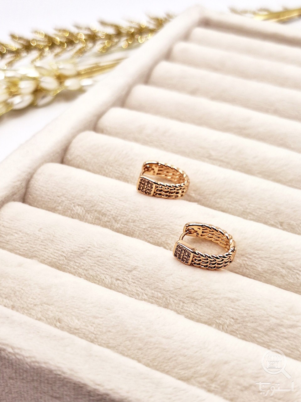 گوشواره طلایی طرح بافت نگینی برند ژوپینگ