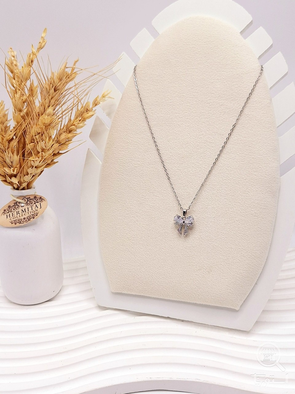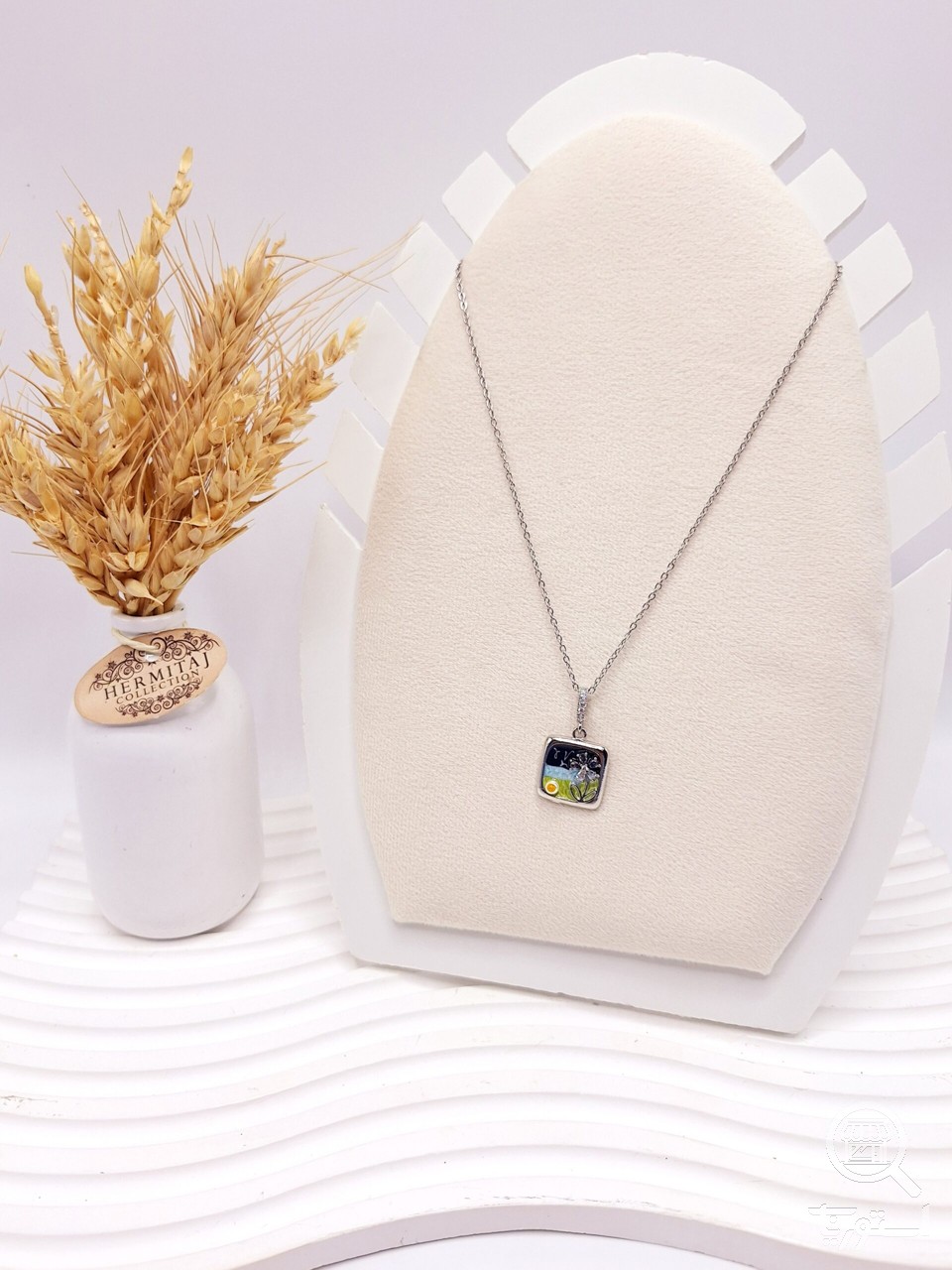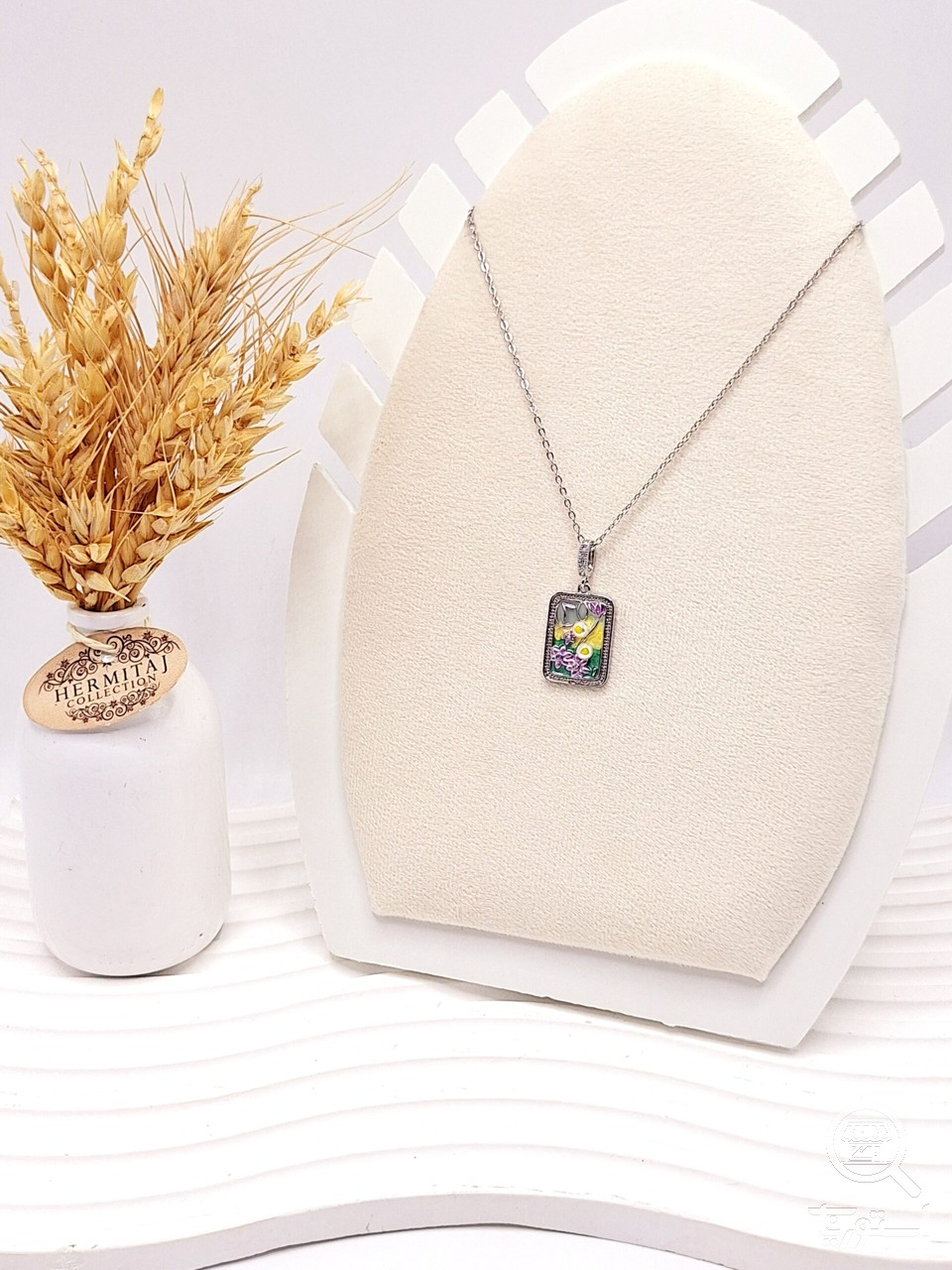 گردنبند میناکاری طرح گل پنج پر بنفش