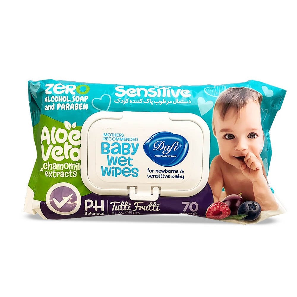 دستمال مرطوب پاک کننده کودک دافی مدل حساس- بسته 70 عددی