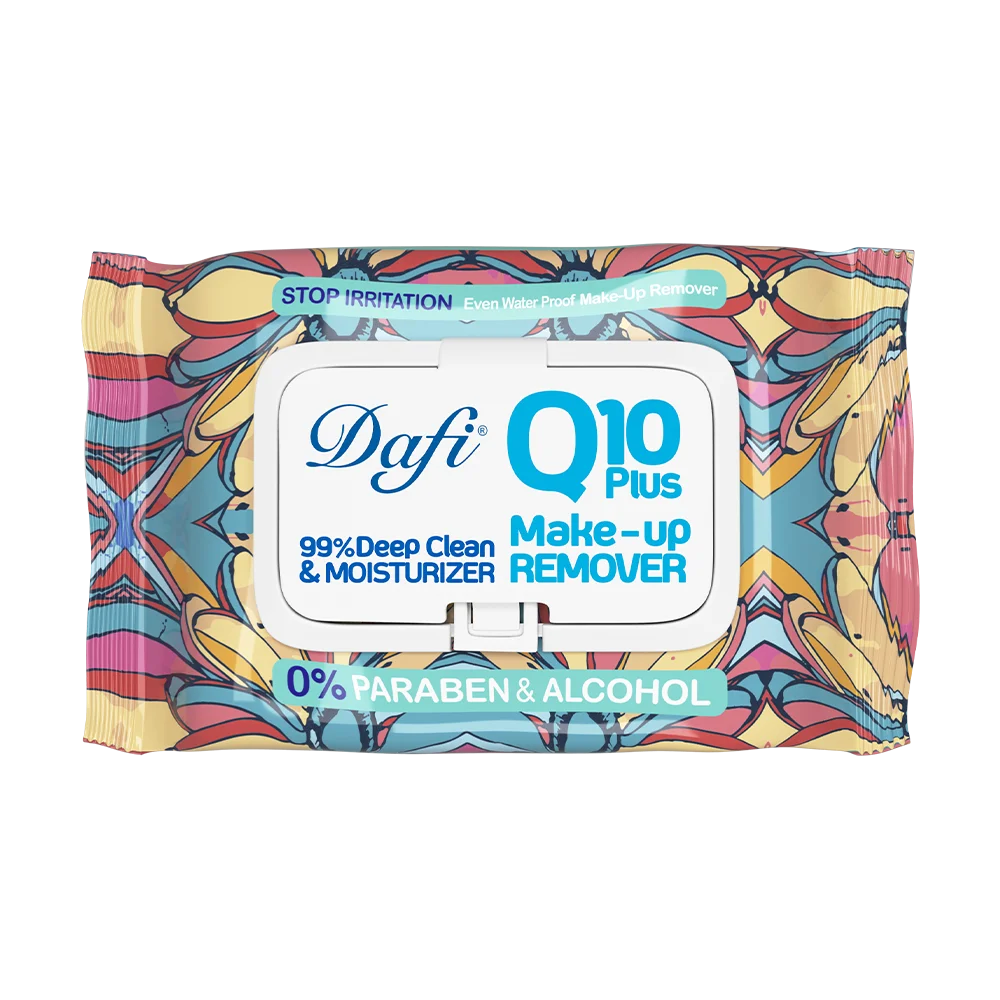 دستمال مرطوب پاک کننده آرایش دافی مدل Q10 طرح میوه انجیر بسته 50 عددی