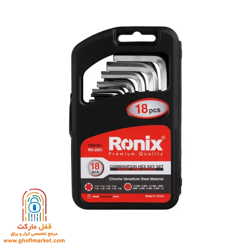 مجموعه 18 عددی آچار آلن کوتاه رونیکس مدل RH-2051