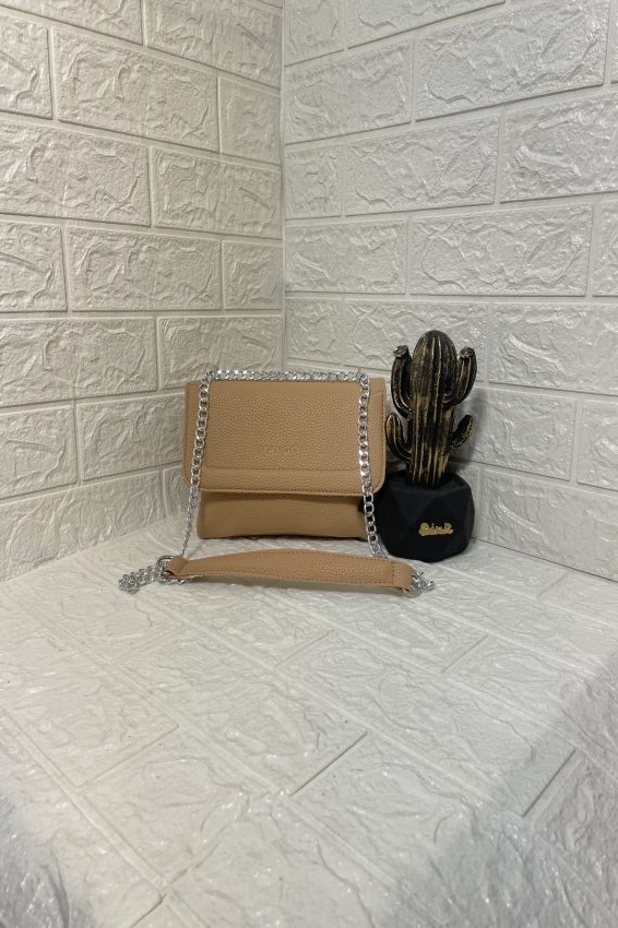کیف مجلسی زنانه کوچک کرم با زنجیر طلایی