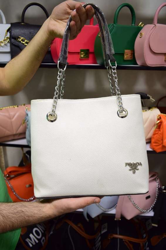 کیف دستی زنانه سفید با جزئیات زنجیری