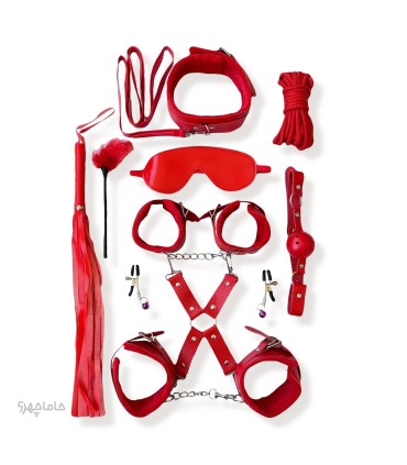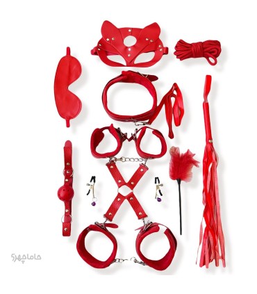 کاستوم اکسسوری 11 تکه (شلاق،دستبند،پابند،دهان بند،تیگلز،گیره،چشم بند،طناب) کد 7
