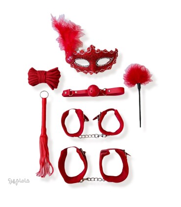 ست 8 تکه (دستبند،شلاق،دهان بند،نقاب،پابند،شلاق،طناب،تیگلر) کد 19