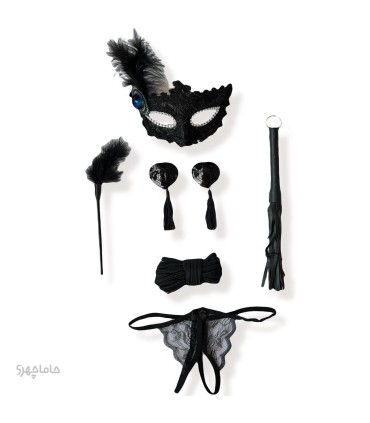 کاستوم فانتزی اکسسوری ۶ تکه (چشم بند,شلاق،دهان بند،تیگلر،بادی توری) کد 32
