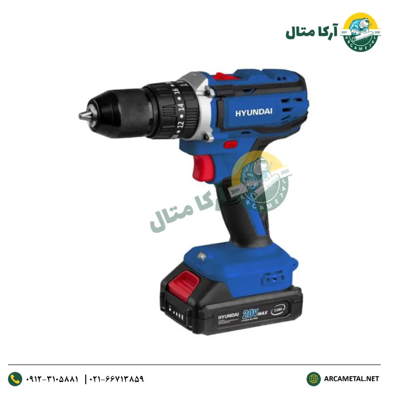 دریل شارژی چکشی HP-420 برند هیوندای 20 ولت