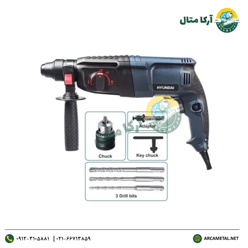 دریل بتن کن سه حالته چکشی HP8029-EH برند هیوندای 800 وات