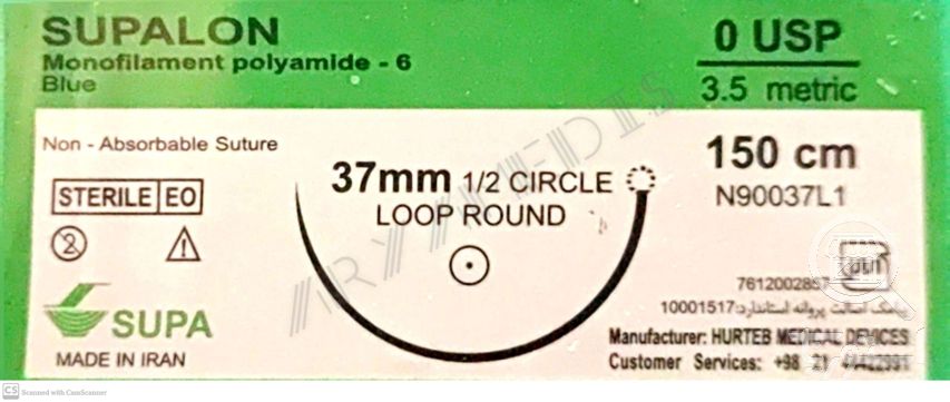نخ و سوزن جراحی نایلون لوپ 0 راند سوزن 37 (غیر قابل جذب مصنوعی سوپا)(بسته 36 عددی)