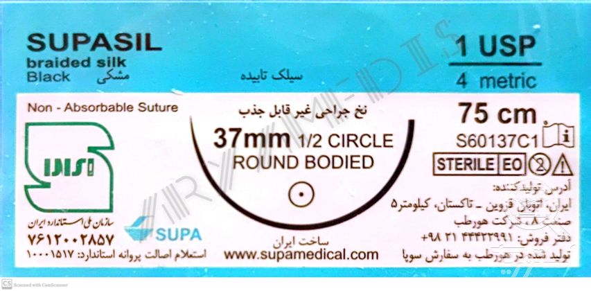 نخ و سوزن جراحی سیلک 1 راند سوزن 37 (غیر قابل جذب طبیعی) (بسته 36 عددی)