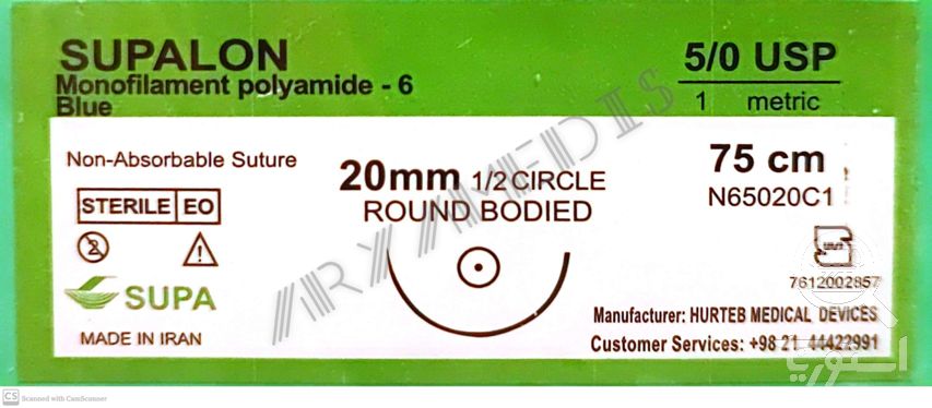نخ و سوزن جراحی نایلون 5/0 راند سوزن 20 (غیر قابل جذب مصنوعی سوپا)(بسته 36 عددی)