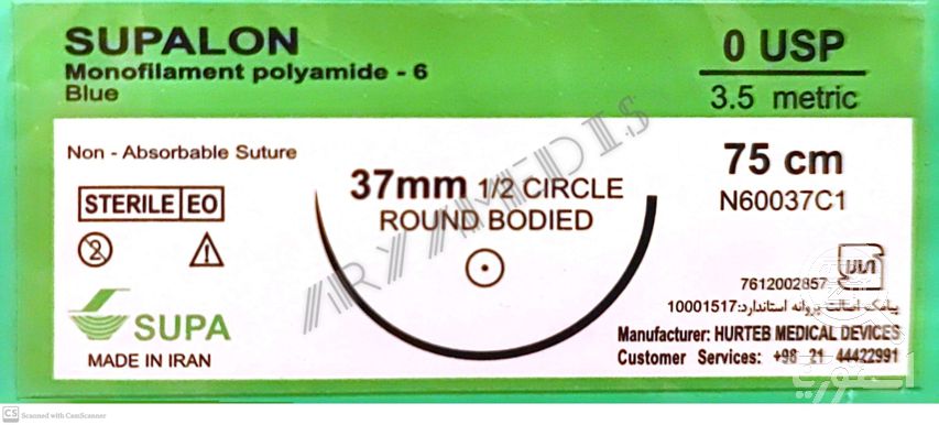 نخ و سوزن جراحی نایلون 0 راند سوزن 37 (غیر قابل جذب مصنوعی سوپا)(بسته 36 عددی)