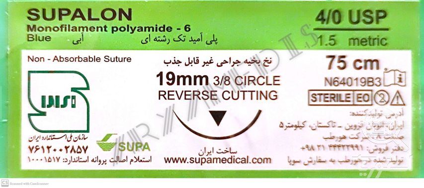 نخ و سوزن جراحی نایلون 4/0 کات سوزن 19 (غیر قابل جذب مصنوعی سوپا)(بسته 36 عددی)