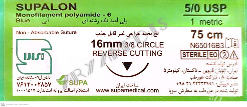 نخ و سوزن جراحی نایلون 5/0 کات سوزن 16 (غیر قابل جذب مصنوعی سوپا)(بسته 36 عددی)