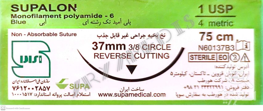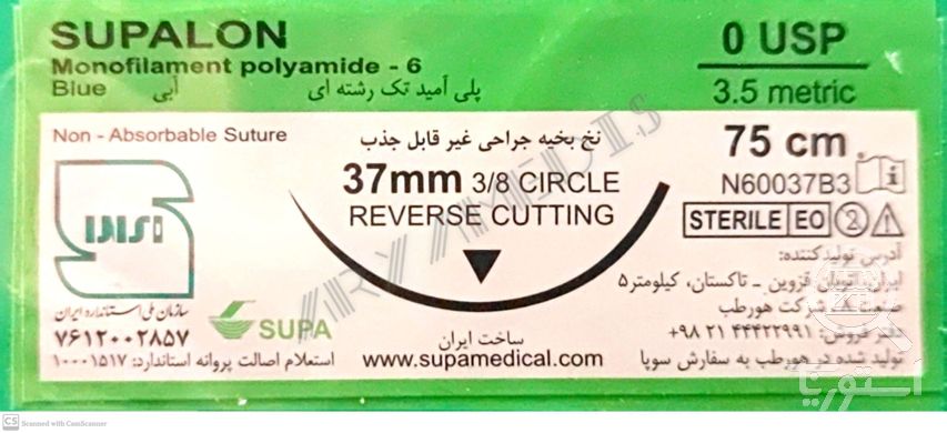 نخ و سوزن جراحی نایلون 0 کات سوزن 37 (غیر قابل جذب مصنوعی سوپا)(بسته 36 عددی)