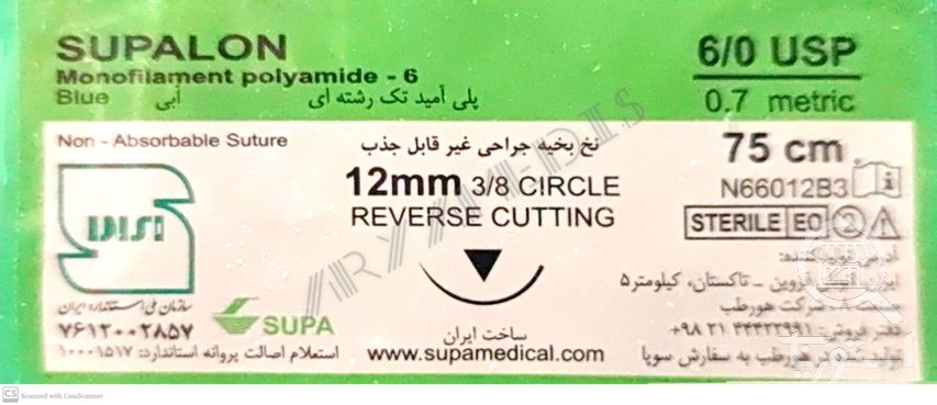 نخ و سوزن جراحی نایلون 6/0 کات سوزن 12 (غیر قابل جذب مصنوعی سوپا)(بسته 36 عددی)