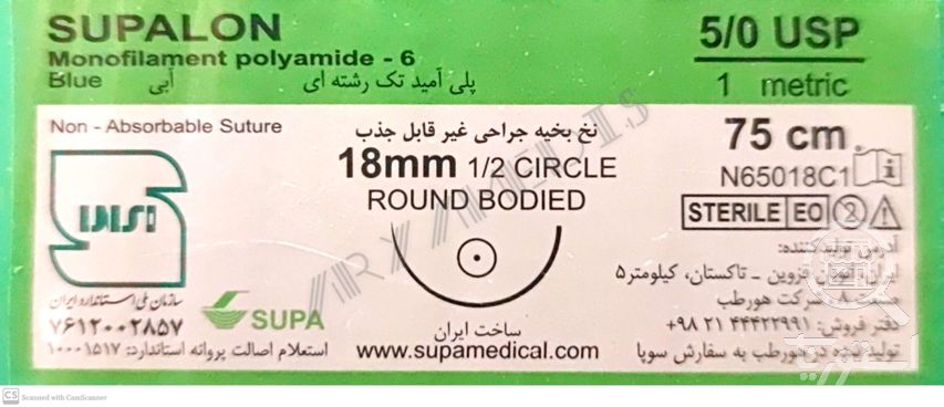 نخ و سوزن جراحی نایلون 5/0 راند سوزن 18 (غیر قابل جذب مصنوعی سوپا)(بسته 36 عددی)