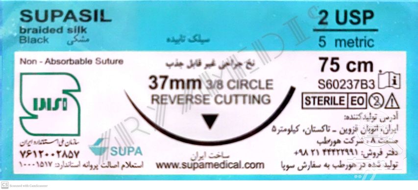 نخ و سوزن جراحی سیلک 2/0 کات سوزن 26 (غیر قابل جذب طبیعی) (سوپا)(بسته 36 عددی)