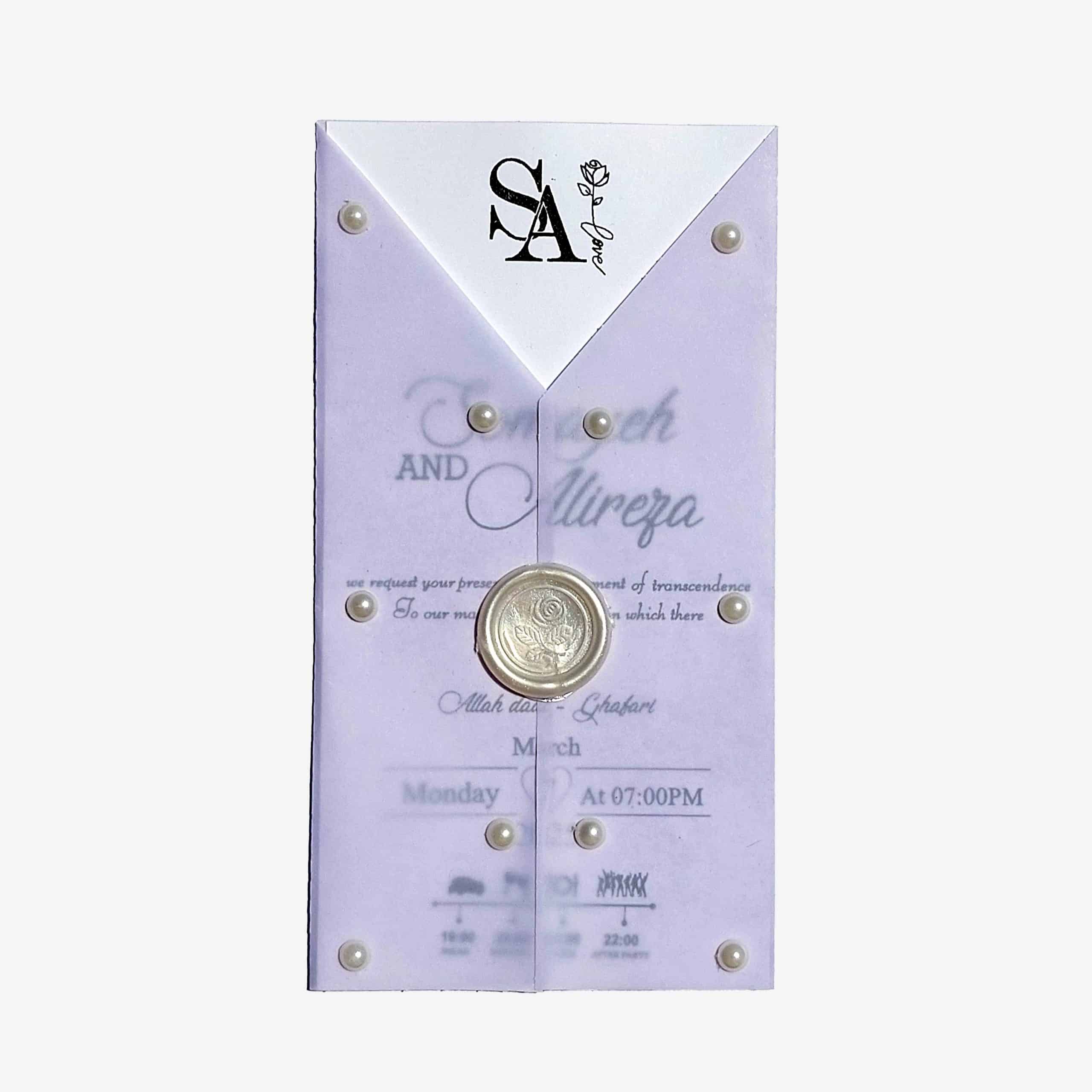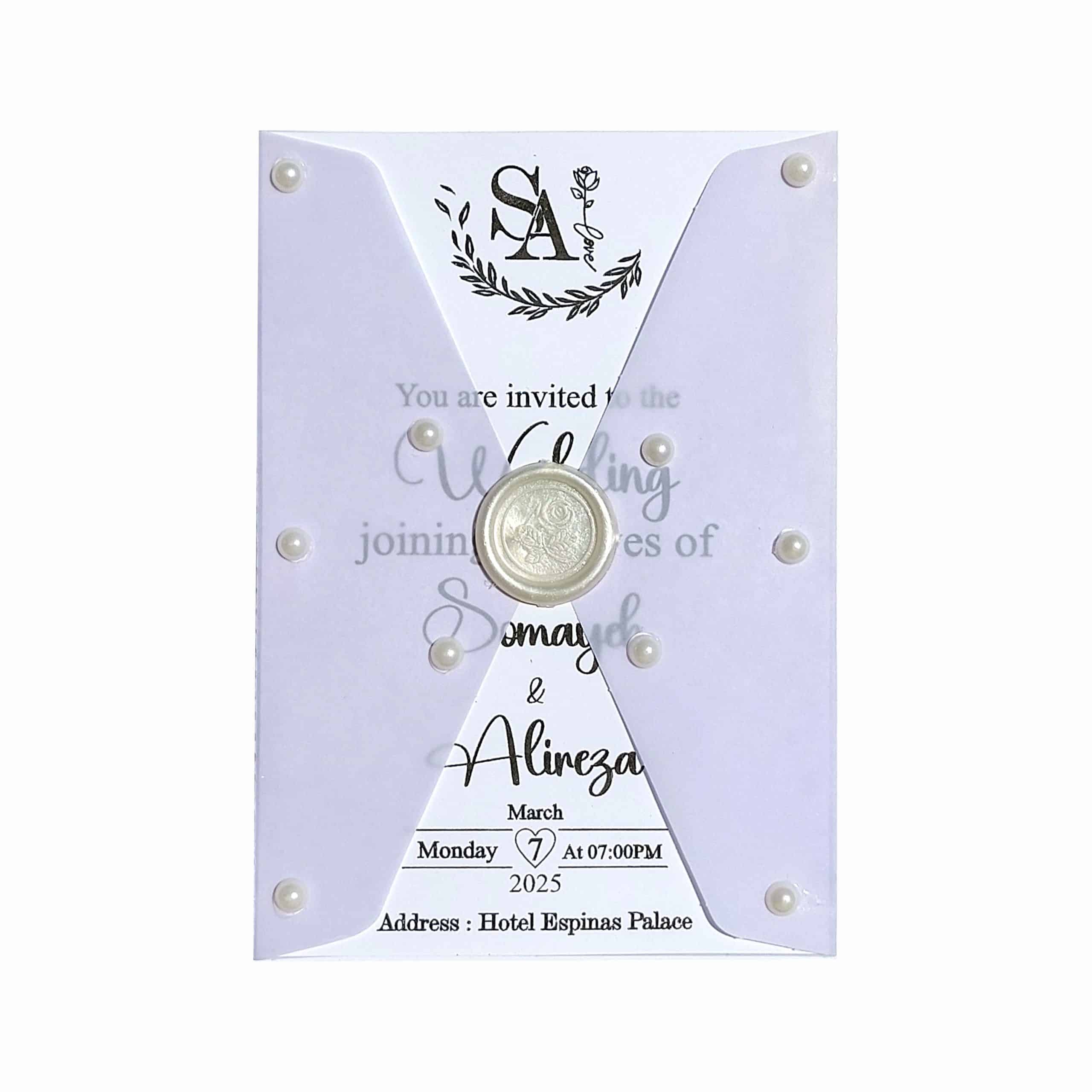 کارت عروسی با پاکت کالکی با مروارید و مهر و موم 508