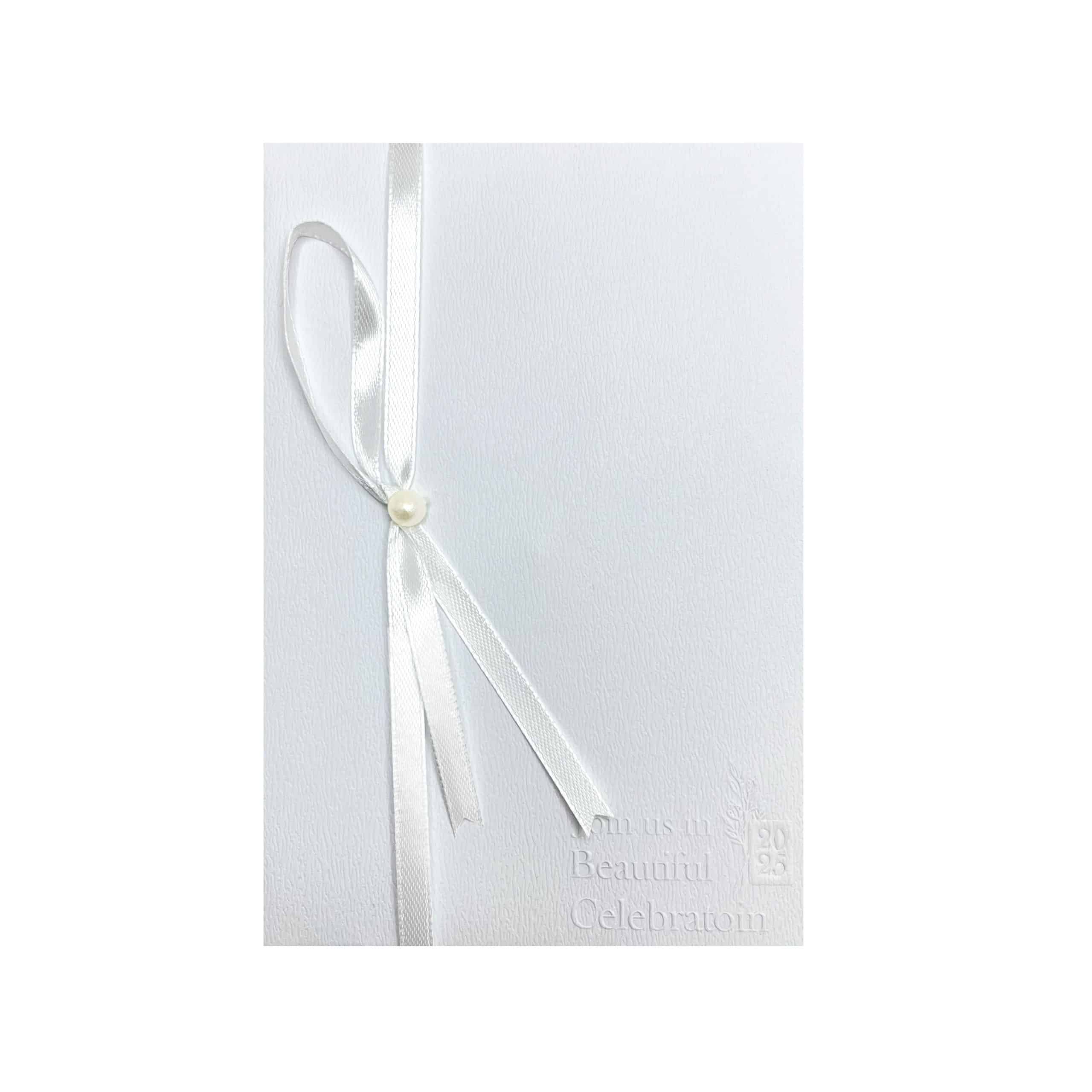 کارت عروسی مستطیل نئوکلاسیک سفید با چاپ برجسته و مقوای طرحدار 22