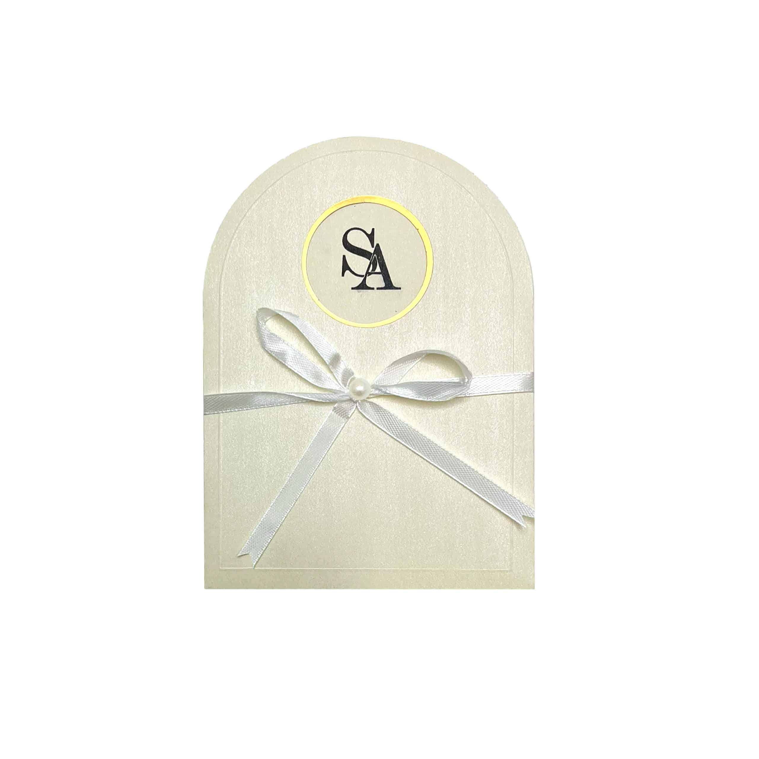 کارت عروسی لاکچری و ساده طاقی با مقوای متالایز کرم و روبان 535