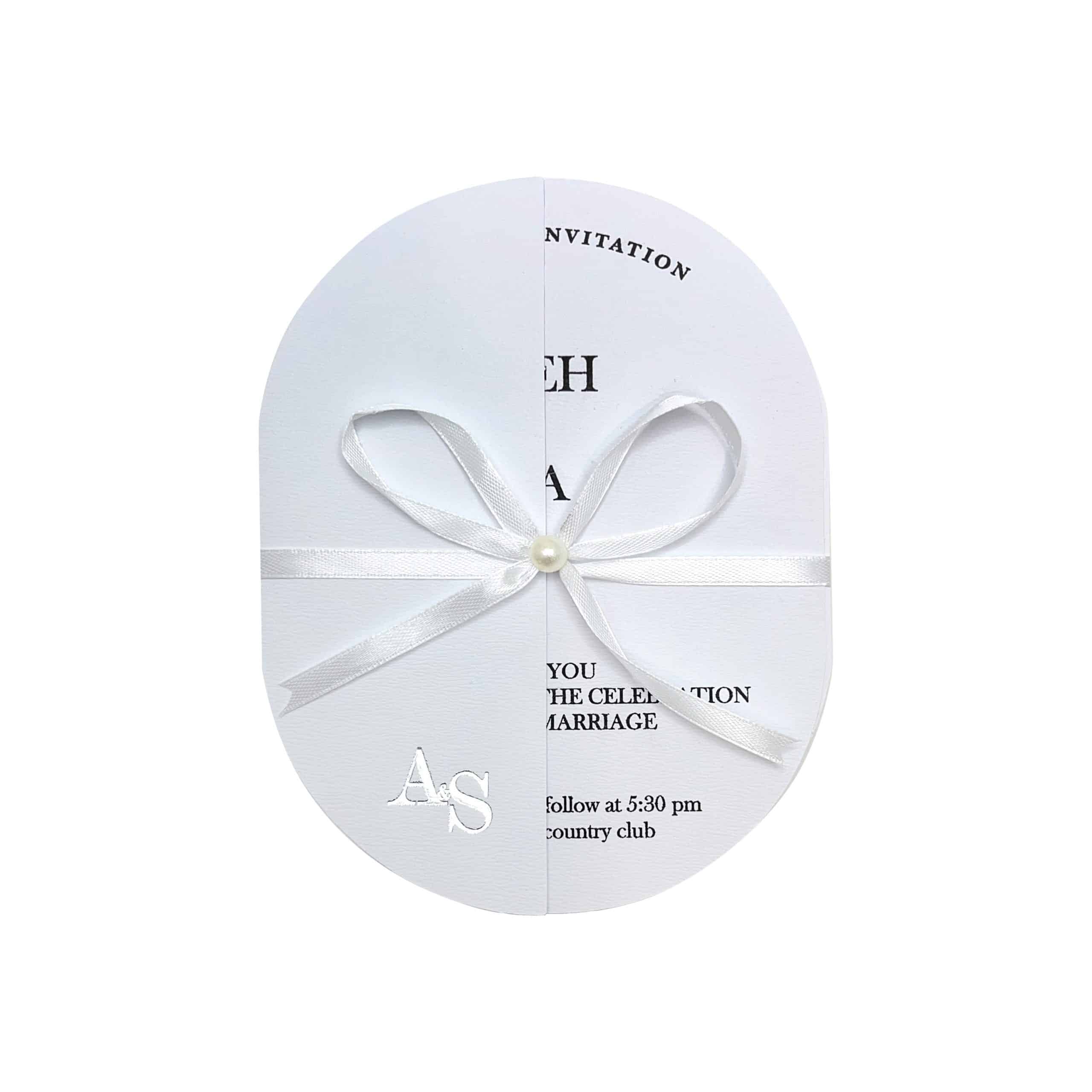 کارت عروسی سفید بیضی شکل نیم باز با مقوای طرحدار 552