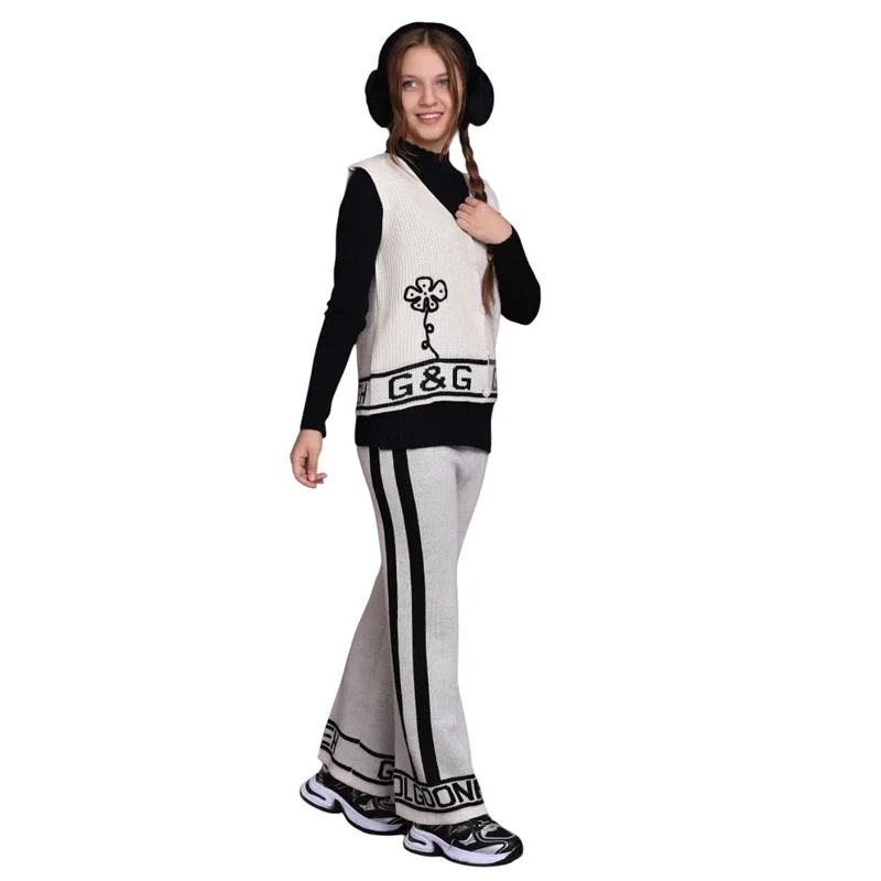 بلوز شلوار دخترانه شیک ۳ تکه مجلسی: ست ژیله بافت نخ تُرک (سایز ۵۰ تا ۶۵)